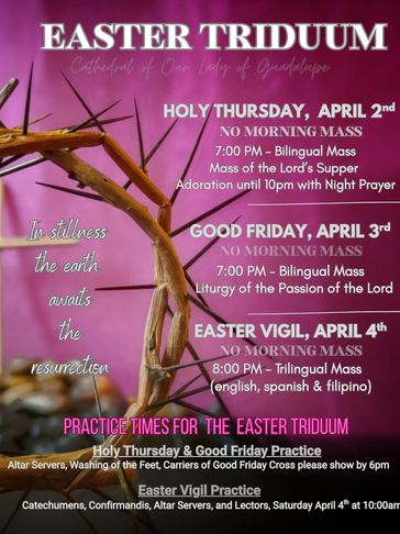 In observance of the Holy Week parish office will be closed and will resume business hours on Tuesday April 7, 2026