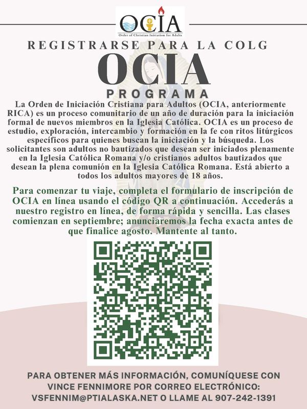 La Orden de Iniciación Cristiana para Adultos u OCIA (anteriormente RICA) es un proceso comunitario de un año de duración para la iniciación formal de nuevos miembros en la Iglesia Católica. OCIA es un proceso de estudio, exploración, intercambio y formación en la fe con ritos litúrgicos específicos para quienes buscan la iniciación y la investigación. Los solicitantes son adultos no bautizados que desean ser iniciados plenamente en la Iglesia Católica Romana y/o cristianos adultos bautizados que desean la plena comunión en la Iglesia Católica Romana. Está abierto a todos los adultos mayores de 18 años.